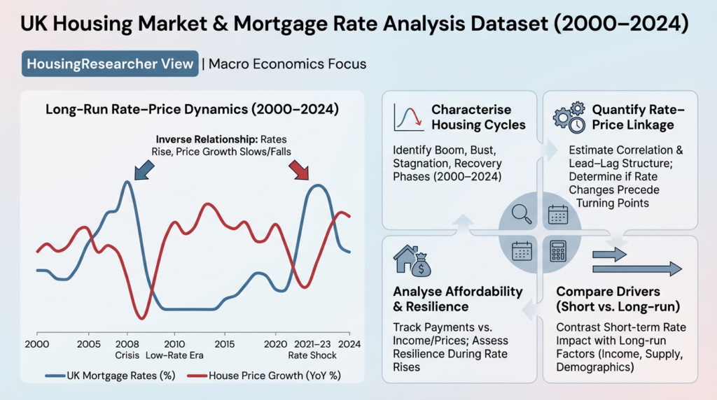 Over the long run, this inverse relationship repeats across every major cycle — from the 2008 crisis to the 2021–23 rate shock — demonstrating that interest rates drive short‑term movements, while deeper structural forces determine the long‑term trend.